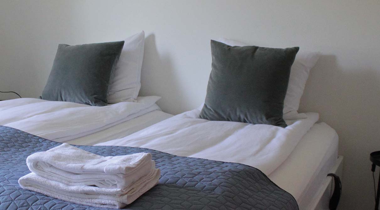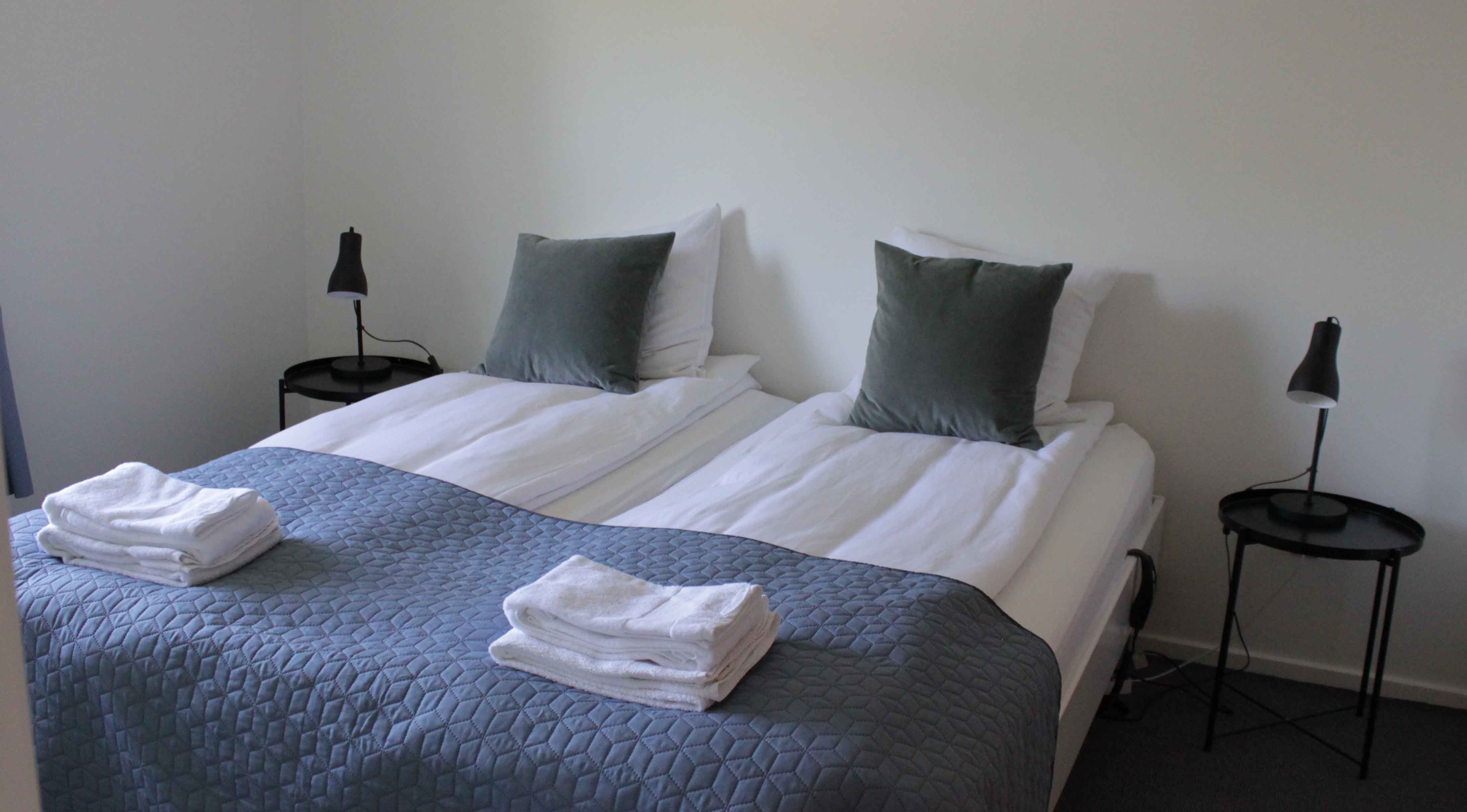 Alle værelser har dobbeltseng/2 senge, opredning sker i det antal værelser der er booket til, primært 1 soverum hvis der er booket til 1 – 2 gæster, men der er altid mindst 2 soverum disponible. Øvrige soverum er disponible i forhold til antal gæster der har booked ud over basisopsætningen. Det er dog altid muligt at få eneværelse såfremt det er aftalt på forhånd.